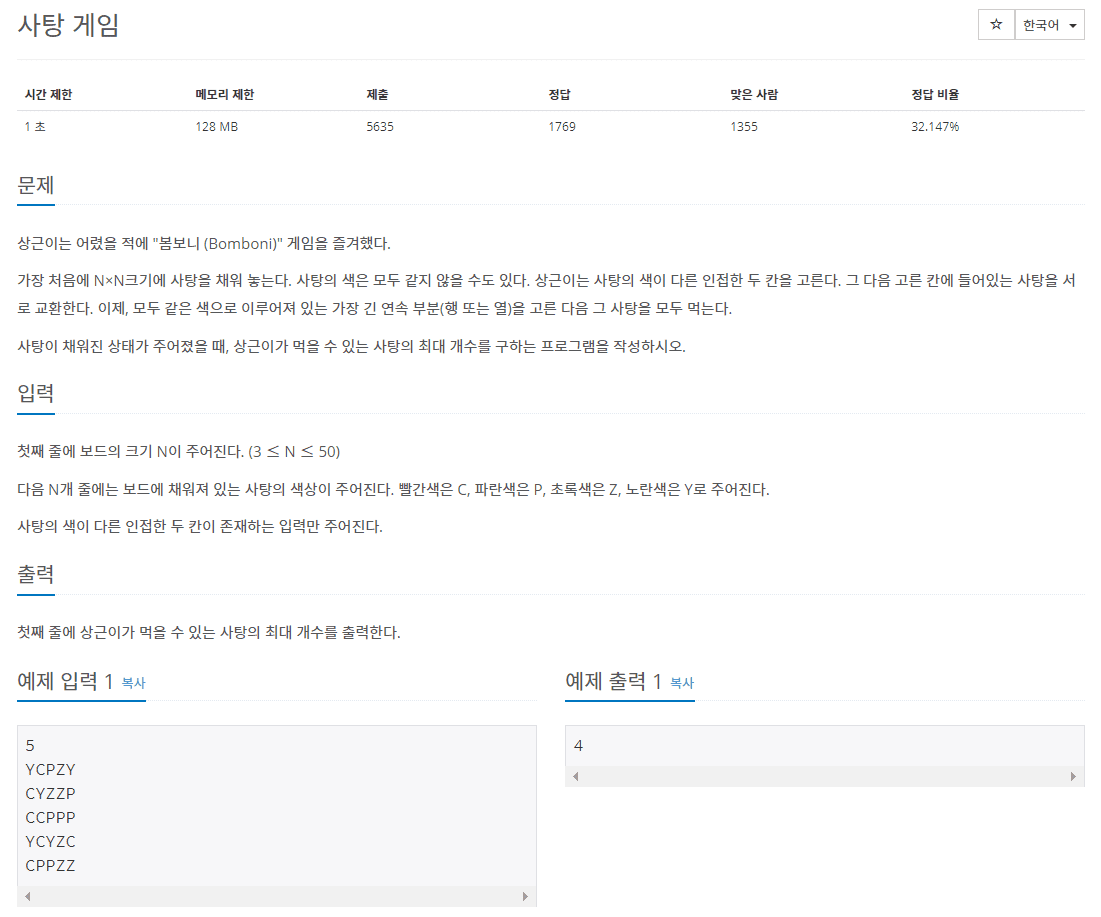 [백준] 3085번 사탕게임