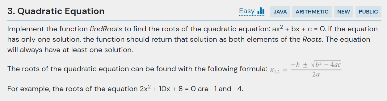 Roots roots = QuadraticEquation.findRoots(2, 10, 8);