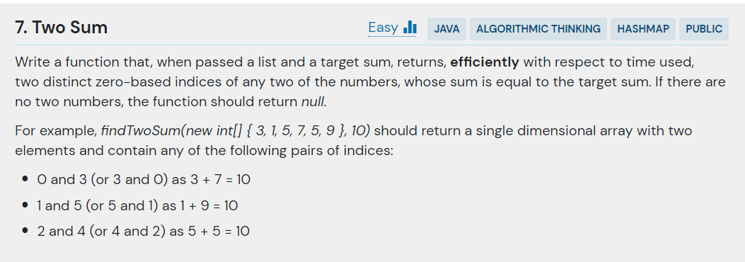 int[] indices = findTwoSum(new int[] { 3, 1, 5, 7, 5, 9 }, 10);