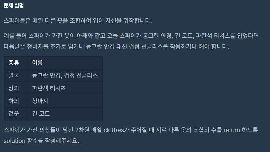 public int solution(String[][] clothes) {