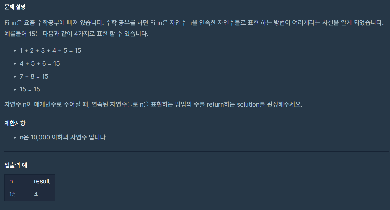 public int 숫자의_표현_solution(int n) {