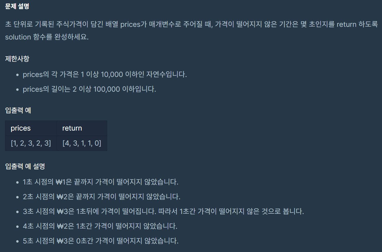 Assertions.assertArrayEquals(new int[]{4,3,1,1,0}, 주식가격_solution(new int[]{1,2,3,2,3}));