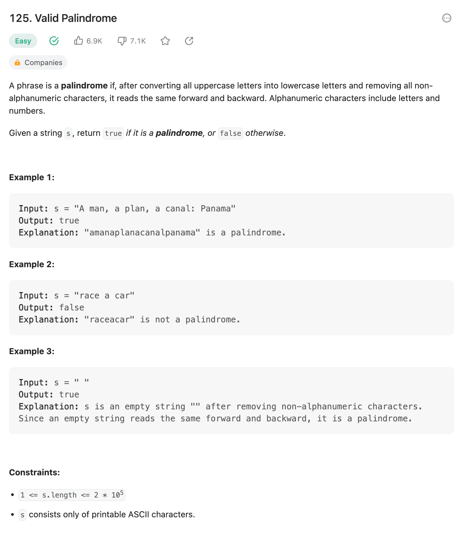 - s가 주어졌을때, letters와 numbers를 제외한 나머지 문자를 제거 후, 토마토처럼 앞뒤가 동일한 문자열이면 true 반환