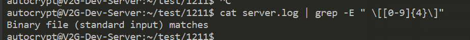 $ cat server.log | grep -E " \[[0-9]{4}\]" -a or $ cat server.log | grep -E " \[[0-9]{4}\]" --text