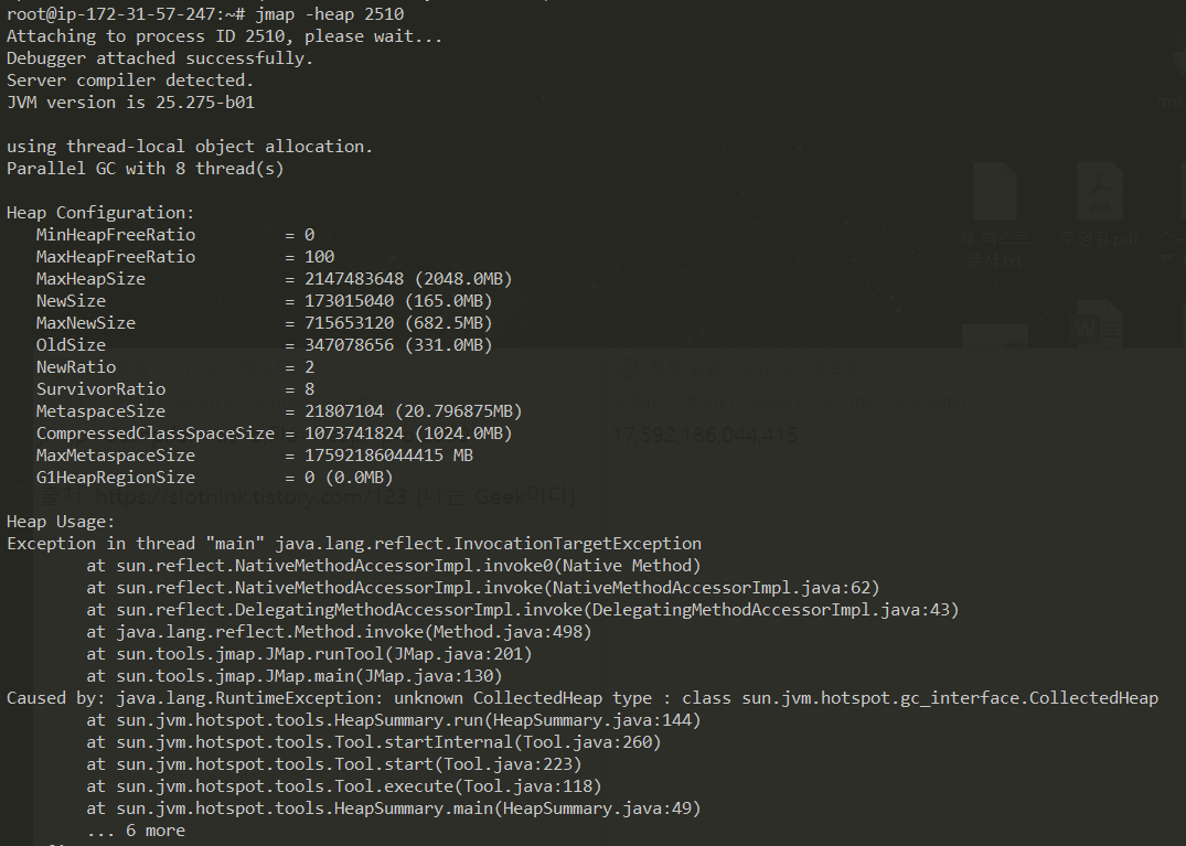 jmap 사용 시 main java.lang.reflect.InvocationTargetException 발생