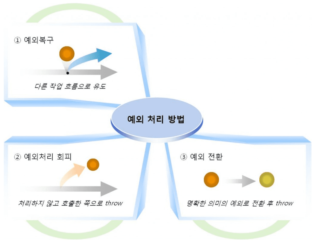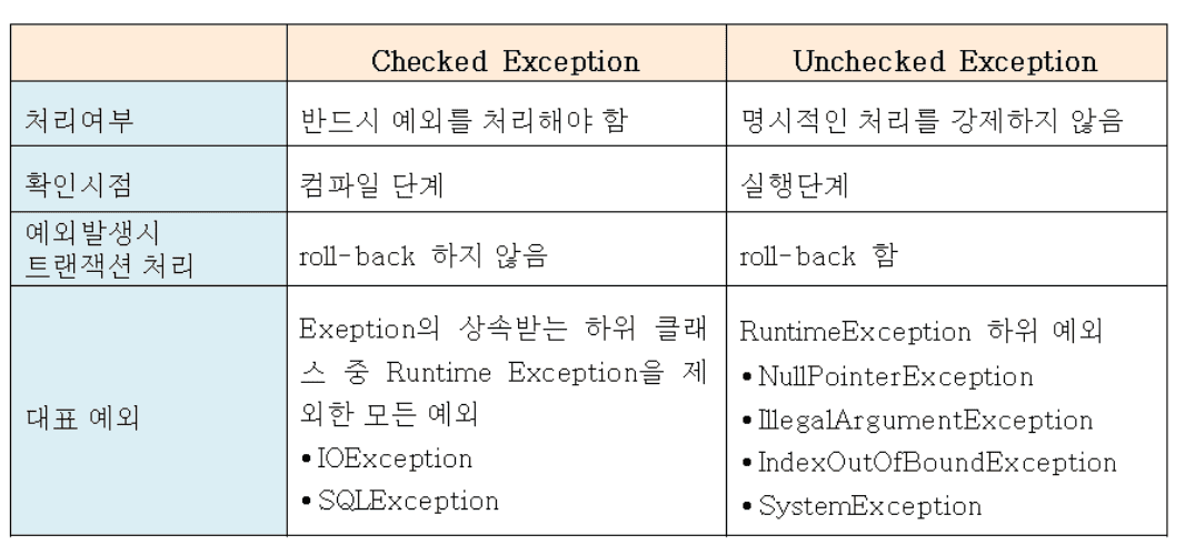 즉, 예외는 개발자가 처리할 수 있기 때문에 예외를 구분하고 그에 따른 처리 방법을 명확히 알고 적용하는 것이 중요하다.