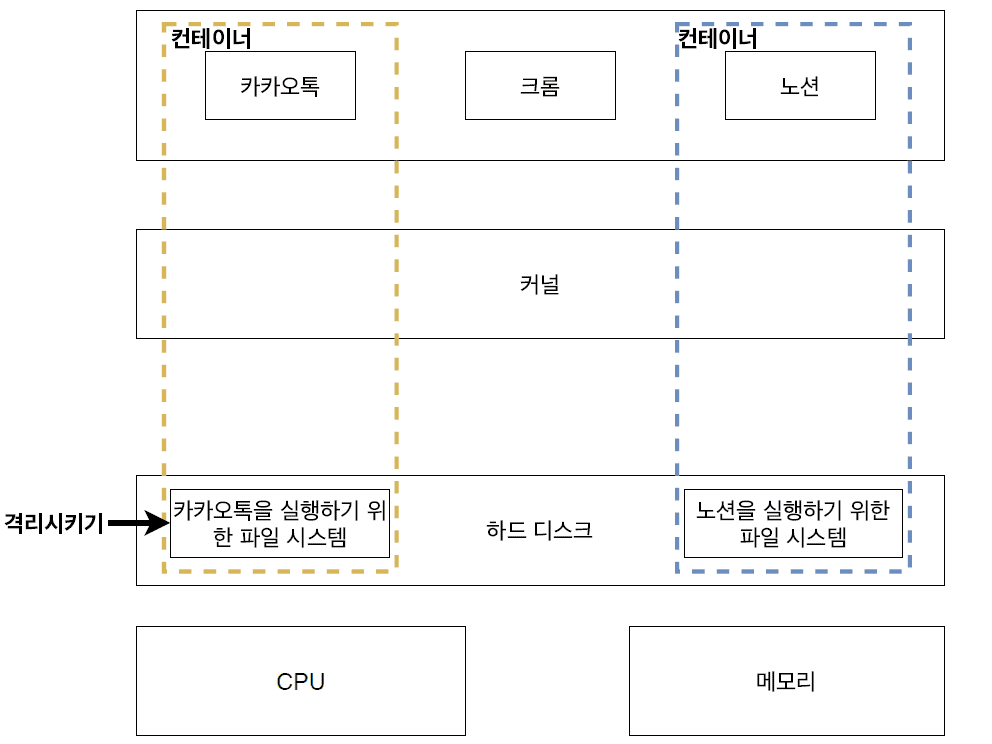 카카오톡 컨테이너와 노션 컨테이너는 커널을 공유하고 있다.