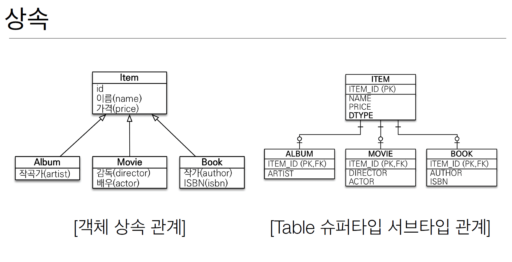 그래서 DB에 저장할 객체에는 상속 관계를 안쓴다. 객체답게 모델링을 할수록 매핑만 늘어난다.