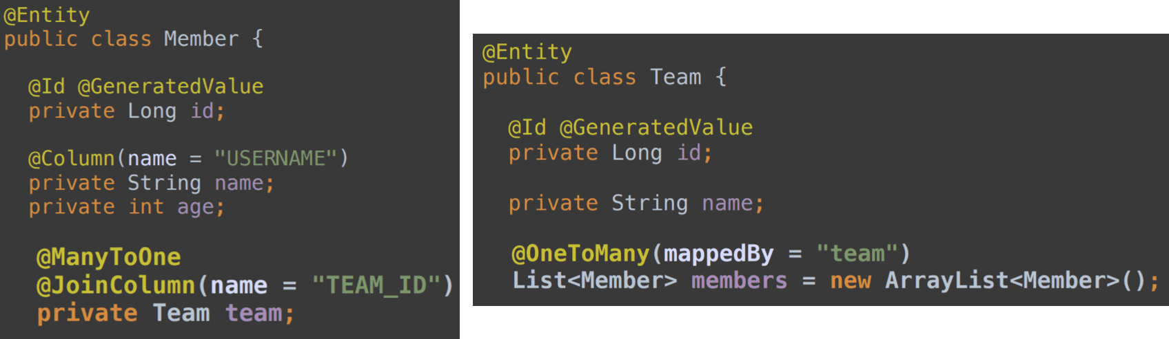 - 여기서는 Member.team 이 연관관계의 주인이 된다.