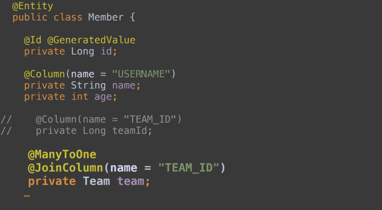 - Member(n)에 Team(1)에 대한 FK가 들어간다.