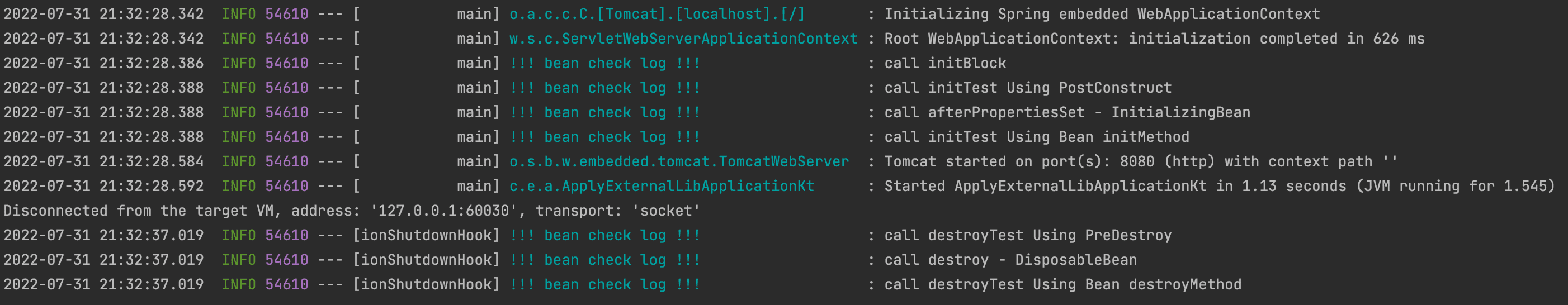 private val logger = LoggerFactory.getLogger("!!! bean check log !!!")
