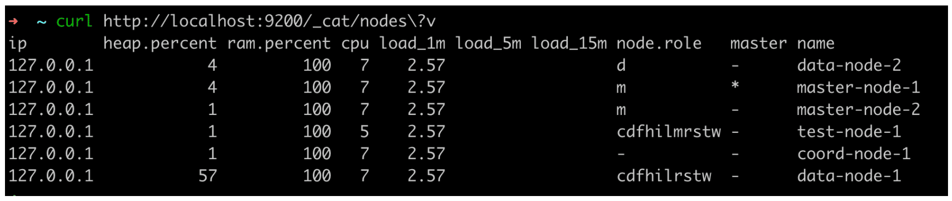 노드 정보 확인 API 를 사용하면 노드의 role 을 확인할 수 있다.