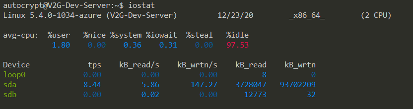 [kB_wrtn/s] : 디바이스에서 초당 쓴 데이터 블록 단위