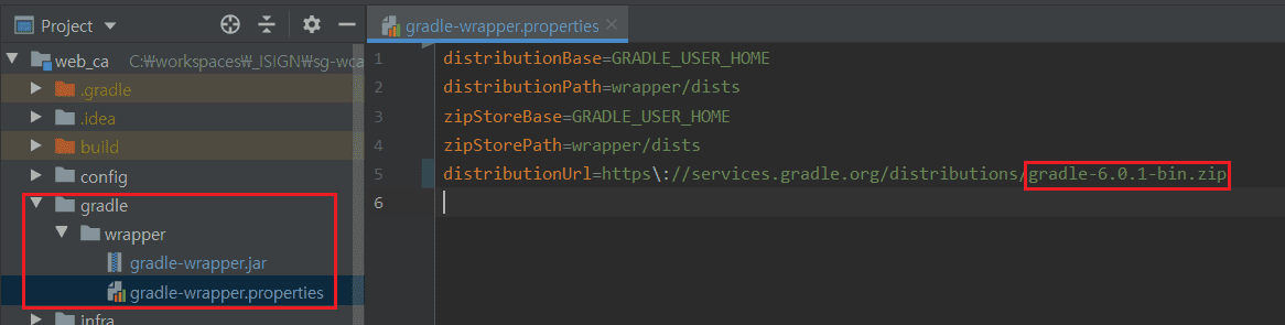gradle -> wrapper -> gradle-wrapper.properties 안에 해당 프로젝트의 gradle 버전이 명시되어 있다.