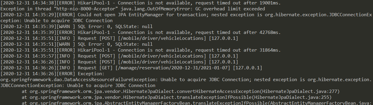 팀에서 서비스하고 있는 제품 중, 아이맘 택시 서비스에서 아래와 같은 현상이 발생 되었다.