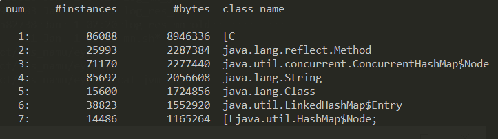 sudo jmap -histo:live $PID | head -n 10 >> $LOG