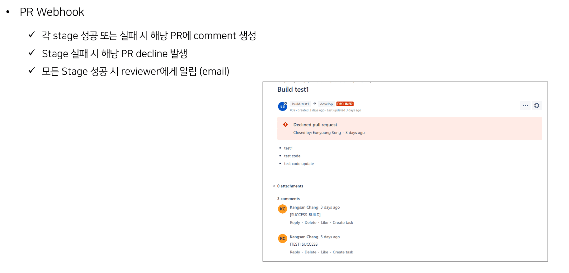 시나리오3. Develop Branch 에서 PR 발생
