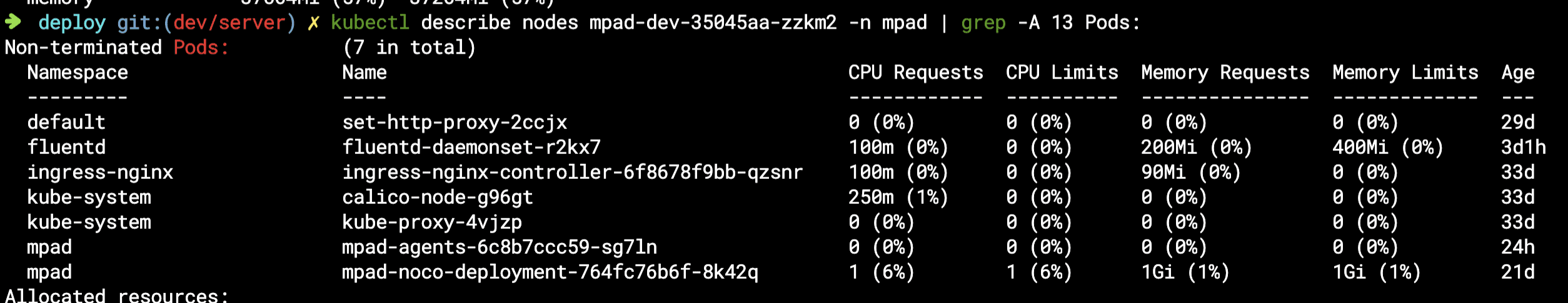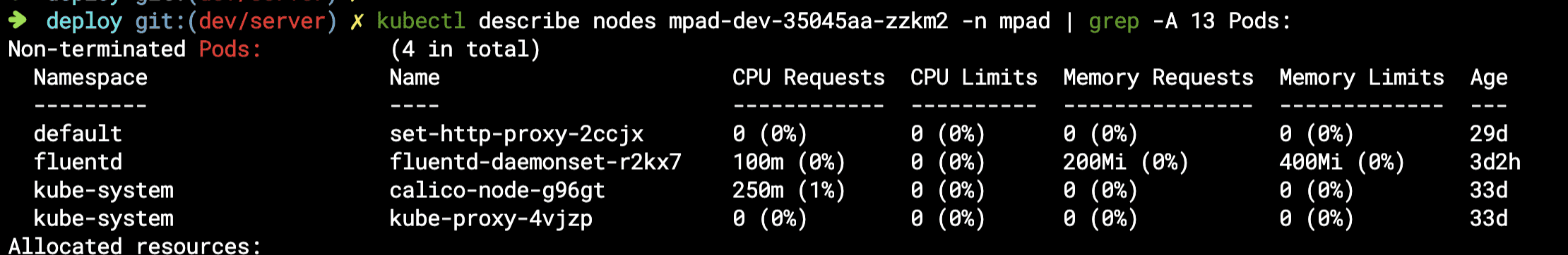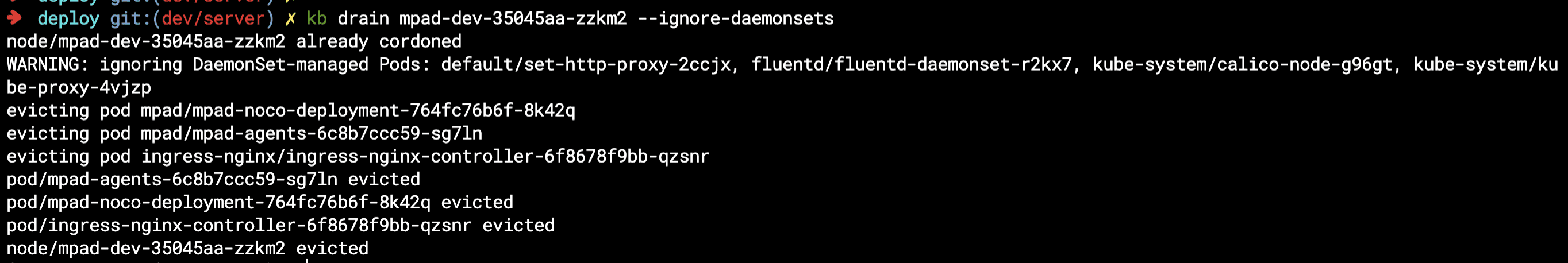 식제 대상 노드의 pod들을 확인해보니, daemonset 등도 포함되어 있는 것을 확인할 수 있다.