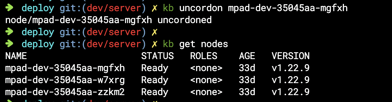 다시 정상적으로 노드에 스케줄링을 하기 위해서는 uncordon을 수행하면 된다.