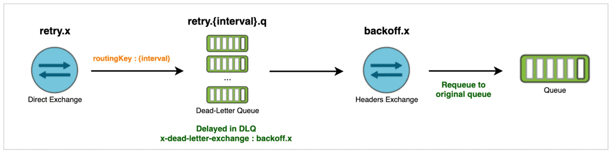 - 이때, backoff 정책에 의해, 재시도를 수행한 횟수에 따라 매번 다른 dead letter queue에 들어가게 된다.
