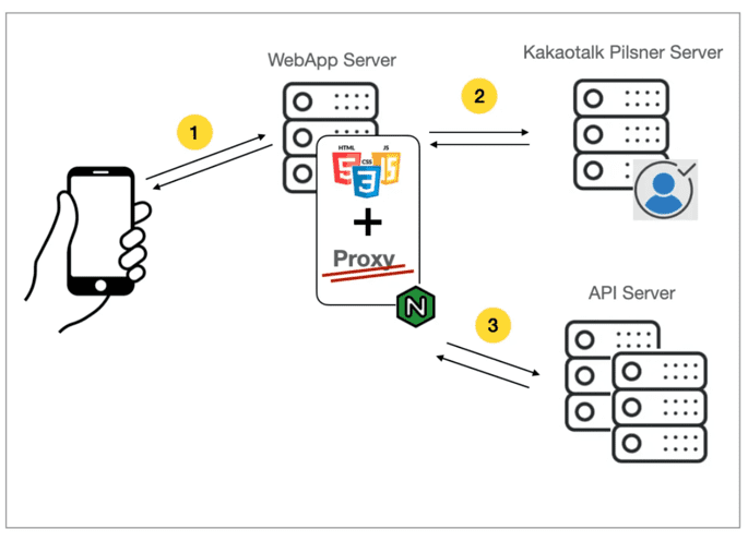 모바일 → webapp server -(proxy)→ 필스너 서버 -(proxy)→ webapp server -(proxy)→ 디지털카드 api server